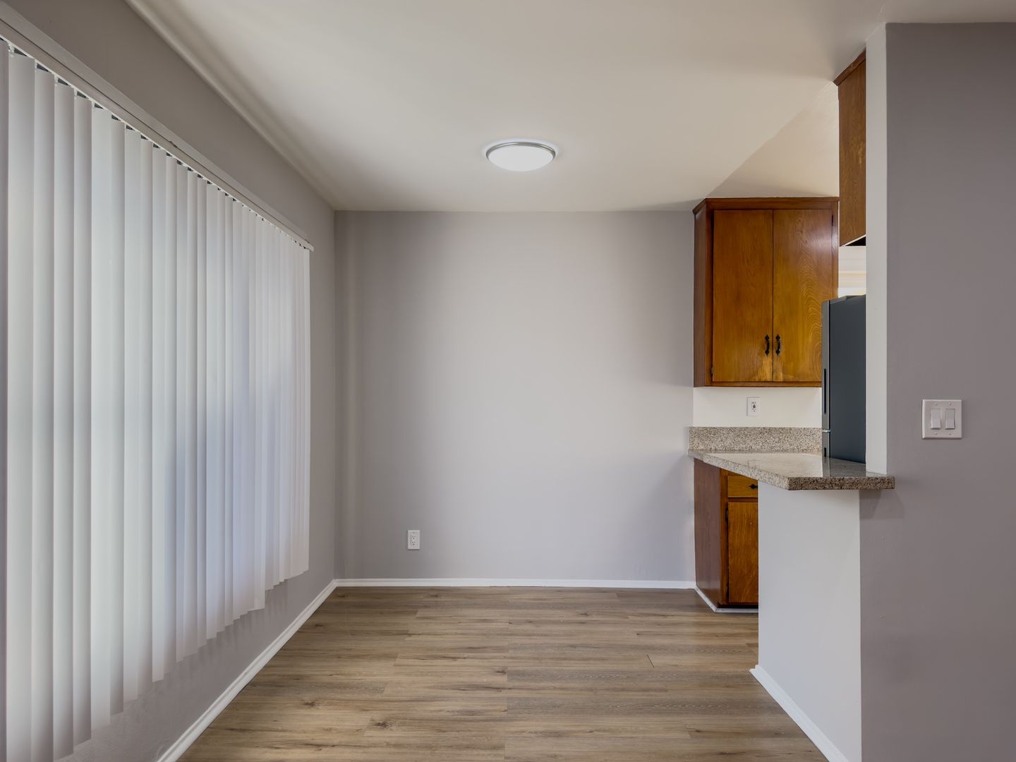Double-Pane Vinyl Windows with Vertical Blinds. Beautiful Hardwood Floors throughout the unit, Beautiful Flooring in the Kitchen, Dining, and Ceramic Tile Floors in the Bathroom. Remodeled Bathroom with New Bathtub, Shower Tiles, New Vanity, and Toilet. Lots of cabinet/linen closet space. **1 Car Parking Space in Garage.**